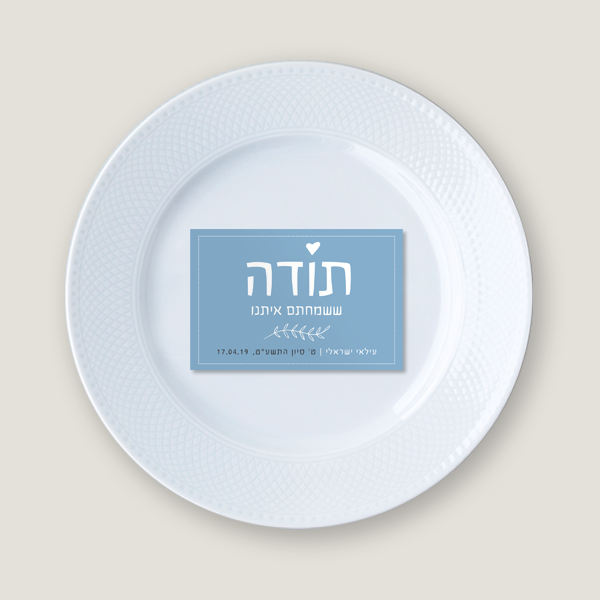 אפשר לשים על השולחנות באולם כרטיס תודה ליד כל צלחת, או להצמיד למתנה קטנה שמחלקים לכל אורח בתום האירוע. ניתן גם לשלוח את הכרטיס בווטסאפ יום לאחר האירוע.