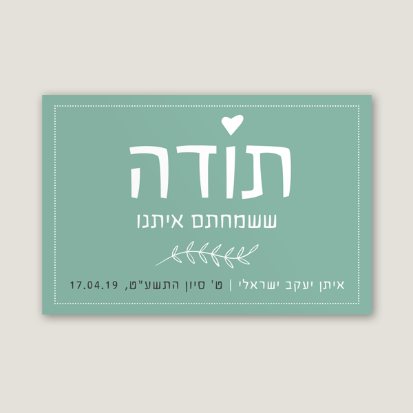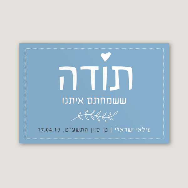 ההתרגשות של הלידה, הלחץ של האירוע וכמות המוזמנים, לא תמיד מאפשרים להודות לכל אורח באופן אישי, ולכן כרטיס תודה קטן וממותג יכול לתת לכל אורח תשומת לב מיוחדת.